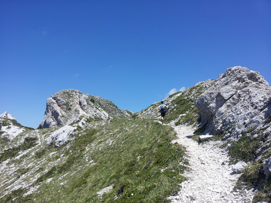 On attaque ensuite la montée au col de la Cochette. C'est raide, ça monte en lacets, personne parle wouhou grosse ambiance. Je monte à un rythme correct, je double 3-4 personnes, puis on arrive au passage de "marche obligatoire" et pour cause... Les pierres débaroulent, le terrain est vraiment casse-margoulette.