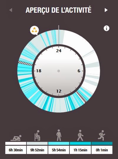 Je ne quitte plus mon Polar Loop et le garde même la nuit. De temps en temps je le connecte à mon PC (je n'ai pas d'Iphone) et je peux ainsi regarder quelles ont été mes plages d'activité. C'est très précis ! J'ai par exemple une barre qui m'indique lorsque j'ai eu un sommeil agité ou lorsque je me suis réveillée. Surprenant !