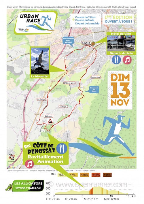 En allant courir vers chez moi vendredi j'ai vu des flèches au sol - tiens une course ? Sur MON parcours ? - et c'est comme cela que la flamme de la course s'est rallumée en moi, amen. Après quelques recherches, j'ai découvert que la course Urban Race était organisée ce dimanche à Seynod (74) par le club de triathlon du coin, Les Alligators Triathlon.